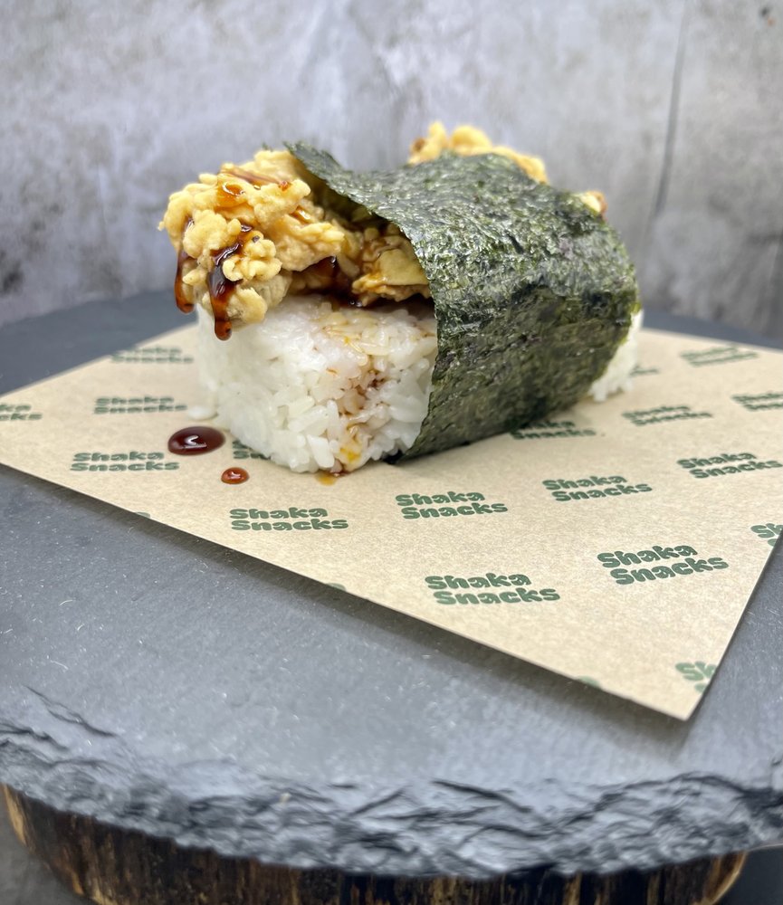 Imitation Crab Meat, Mayonnaise, Onions, Green Onions, Spicy Mayo, Shaka Sauce, Steamed Rice