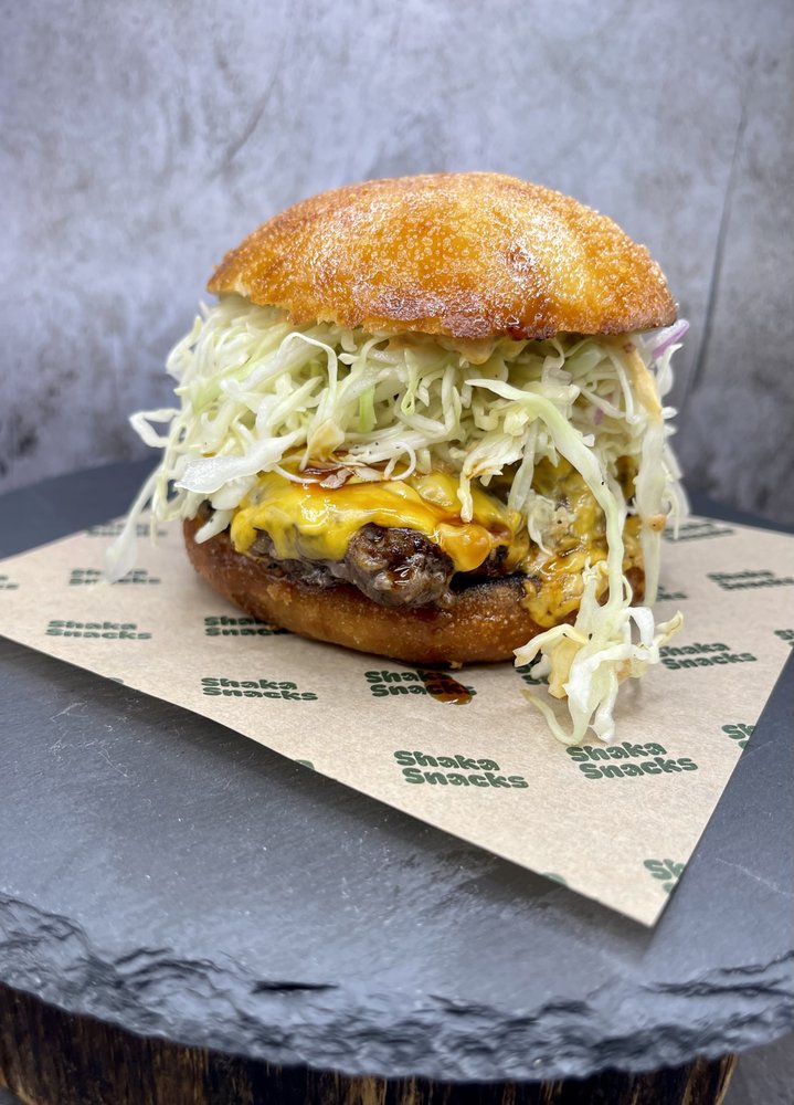 Ground WAGYU Beef Patty, Shaka Sauce, American Cheese, Kimchi Aioli